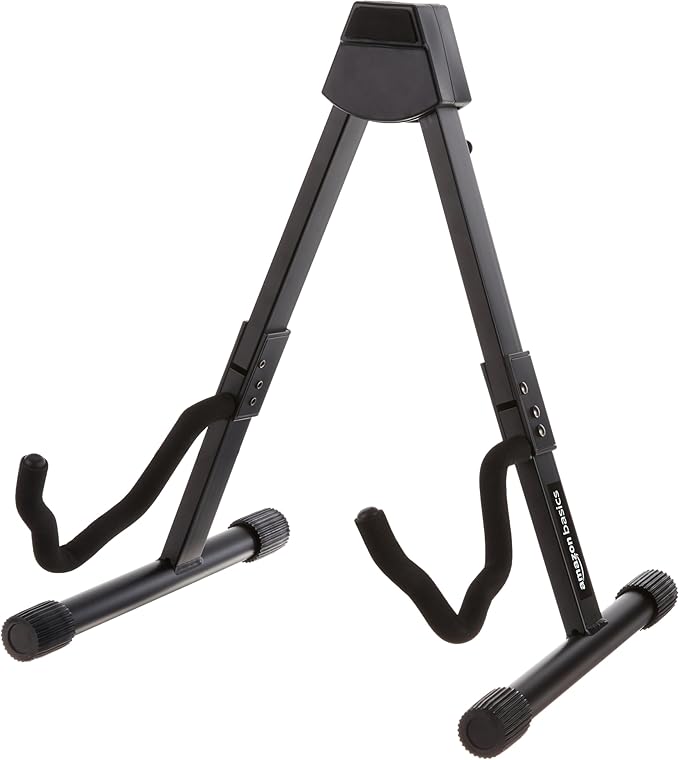 Amazon Basics Adjustable Folding Guitar Stand, A-shape, Fully Assembled - For School Music Program, Concerts & Multiple Users, Black, 8.66 x 15.16 x 3.74 inches